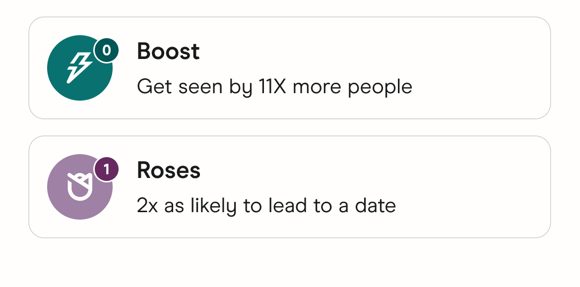 Your available Boosts and Roses will be shown in the upper right of each icon: