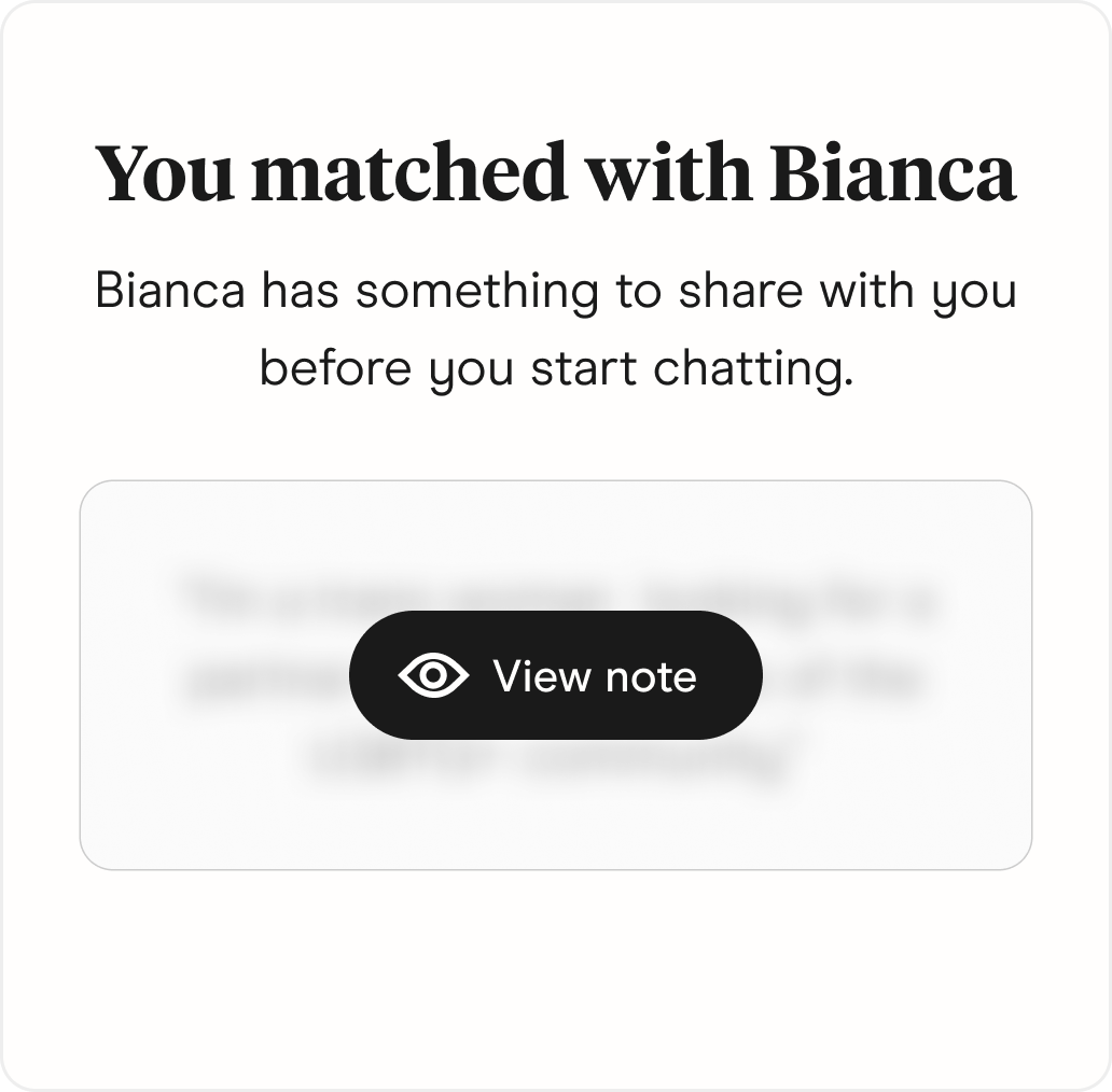 By sharing a little more upfront, Match Note helps create more intentional matches and better conversations.