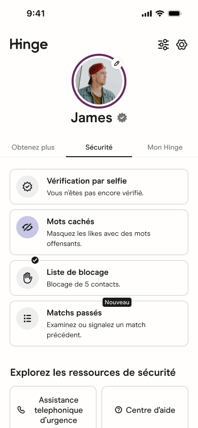 Pour plus d’informations sur le comportement attendu des utilisateurs afin de faire de Hinge un espace positif, consultez nos Règles de la communauté.