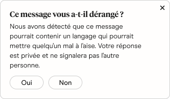 Si nous détectons un langage potentiellement inapproprié dans un message, nous pouvons envoyer une notification de contrôle et demander : « Ce message vous a-t-il dérangé ? »