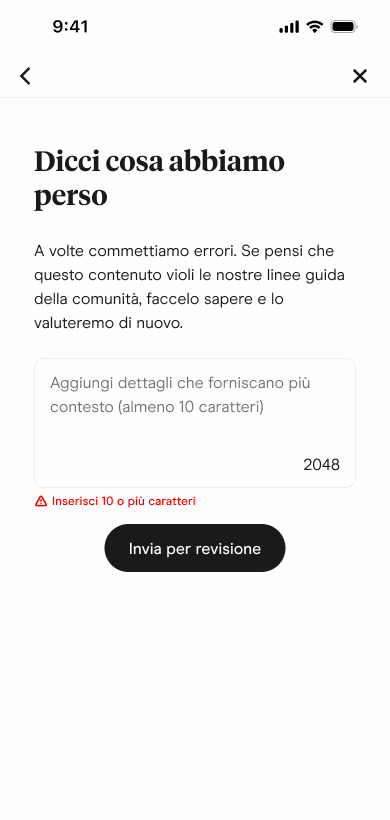 - Individua il contenuto che desideri farci riesaminare.