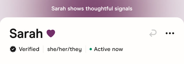Ved å legge til et merke på disse profilene gjør Signals det enklere å gjenkjenne datere som viser tegn på gjennomtenkthet og oppfølging.