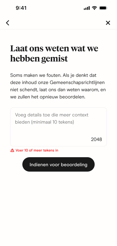 - Schrijf een korte uitleg waarom je denkt dat deze content voldoet aan onze Communityrichtlijnen.