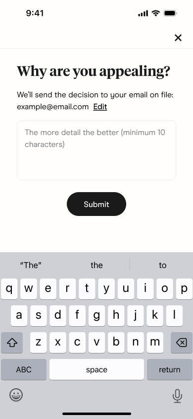 Em outros casos, o Hinge pode solicitar a verificação de identidade após seu recurso já ter sido enviado, se determinarmos que é necessário como parte da nossa investigação.